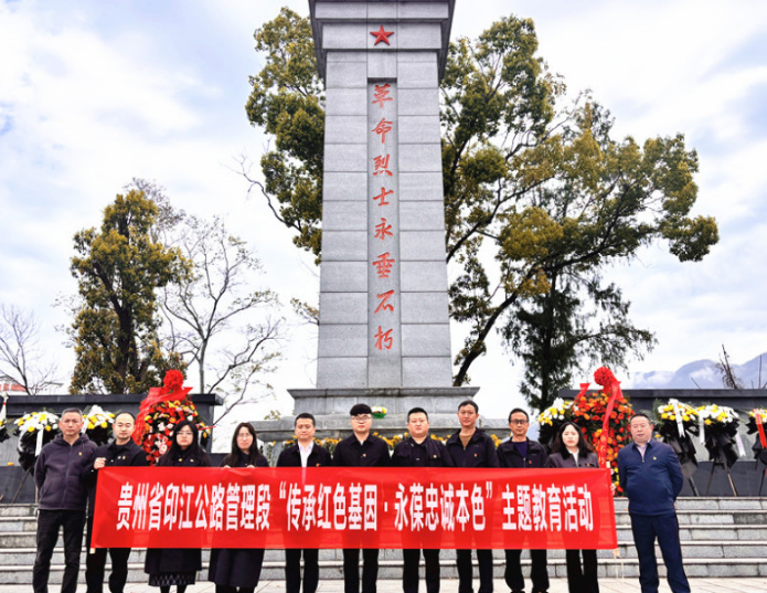 同时,印江公路管理段组织党员干部前往印江自治县太阳山烈士陵园,开展“传承红色基因·永葆忠诚本色”主题党日活动。期间,该段党员干部向革命烈士集体默哀,敬献花篮,并重温入党誓词,有序瞻仰纪念碑,缅怀革命先烈,接受党性教育。