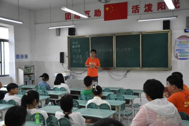 7月21日下午的班级建班会上,班会上,为各班级授课的实践成员与同学们分别作了简短的自我介绍,逐渐熟悉起彼此的情况。在欢声笑语中,原本的陌生感逐渐淡去,实践队员们和梵瑞社区的小朋友们成功“破冰”,建立起亲密团结的关系。