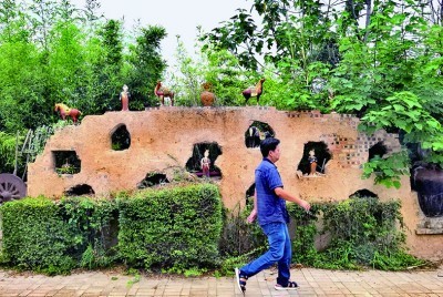 “三彩小镇”处处点缀着唐三彩艺术品。延婧 摄