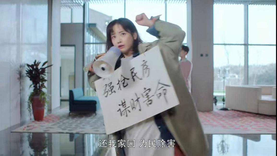 结果还没见到项伯言,就看到她身上挂着一块牌子,手中拿着喇叭大声喊着“谋财害命,还我家园,为民除害”之类的话。