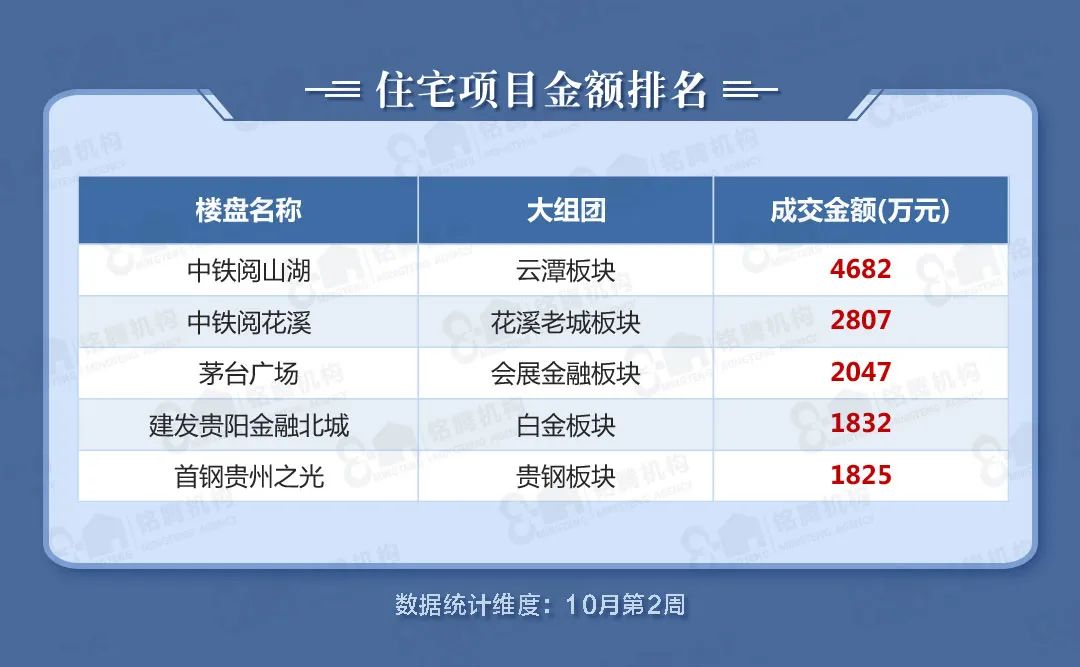 市场周报 | 上周(10.2-10.8)贵阳新房成交合计213套,中铁阅山湖拿下成交总价榜首