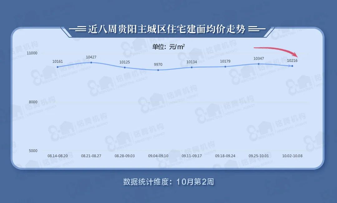 上周贵阳成交均价约为10216元/㎡,环比下降1%。
