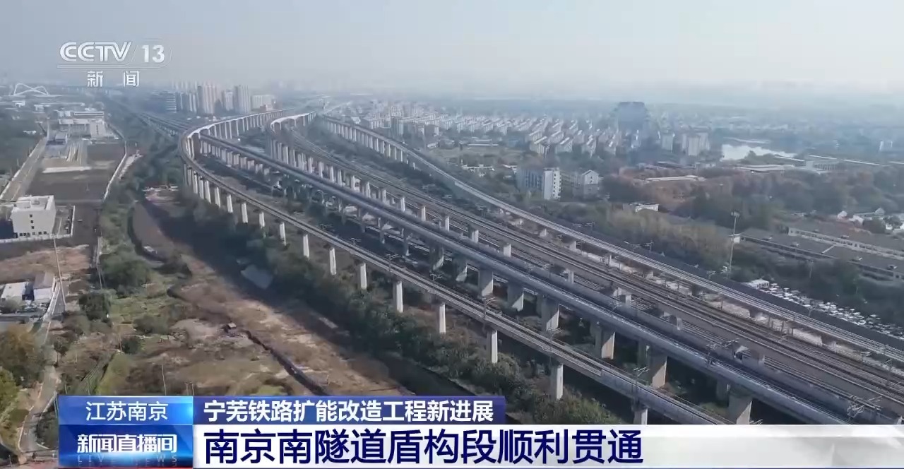 11月21日,南京至芜湖铁路扩能改造控制性工程——南京南隧道盾构段顺利贯通。