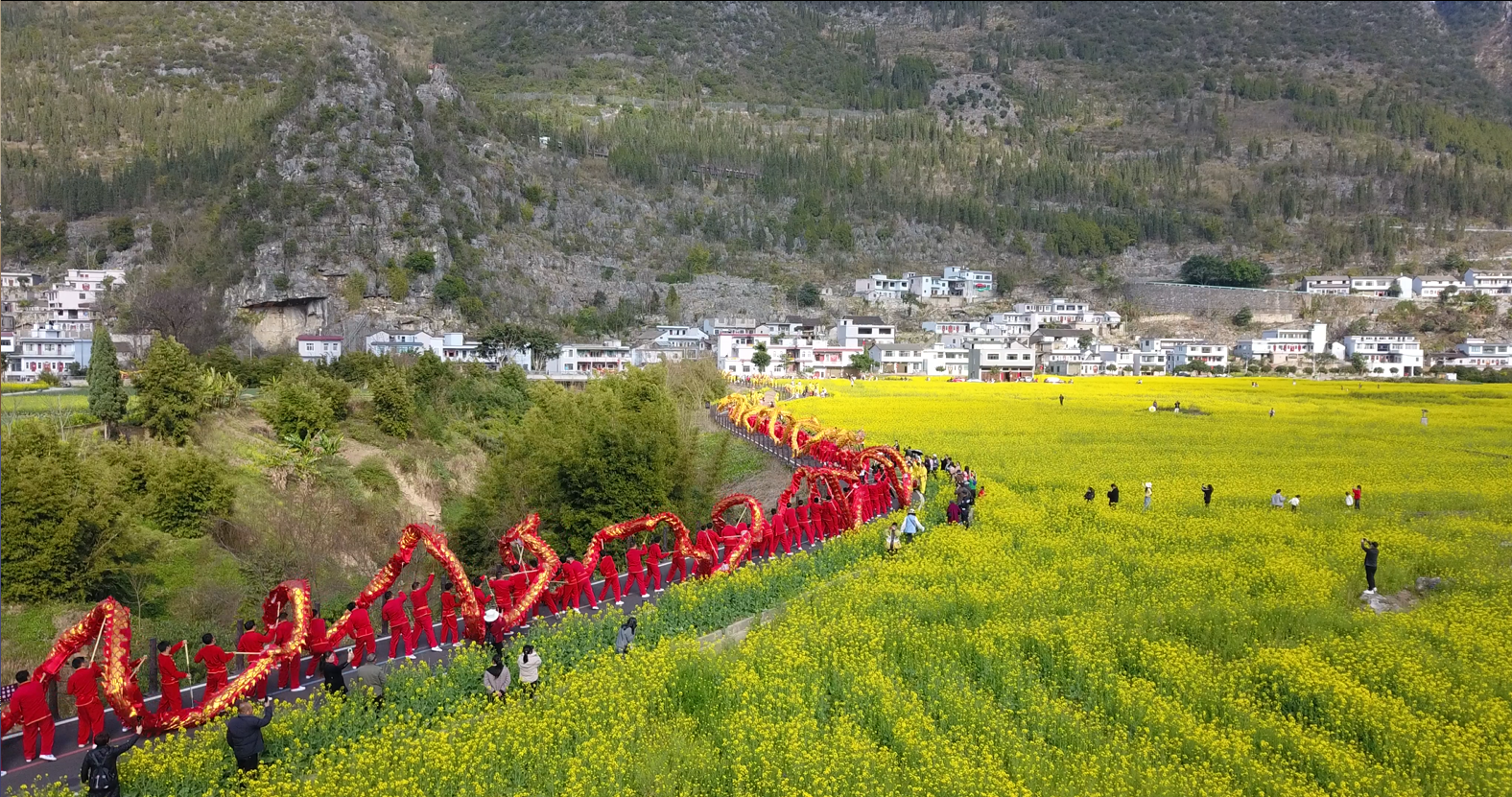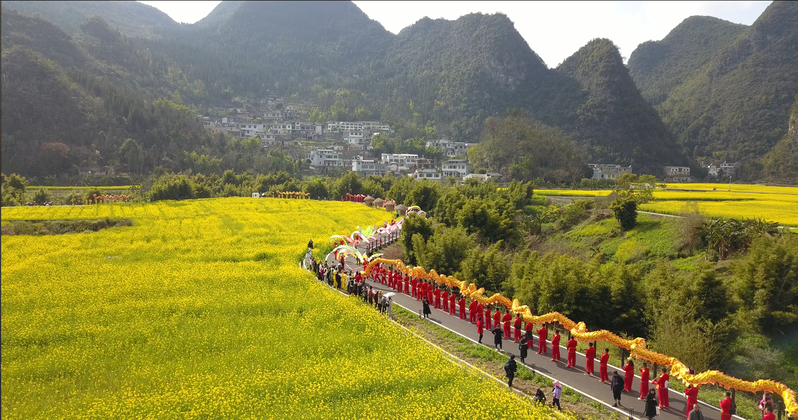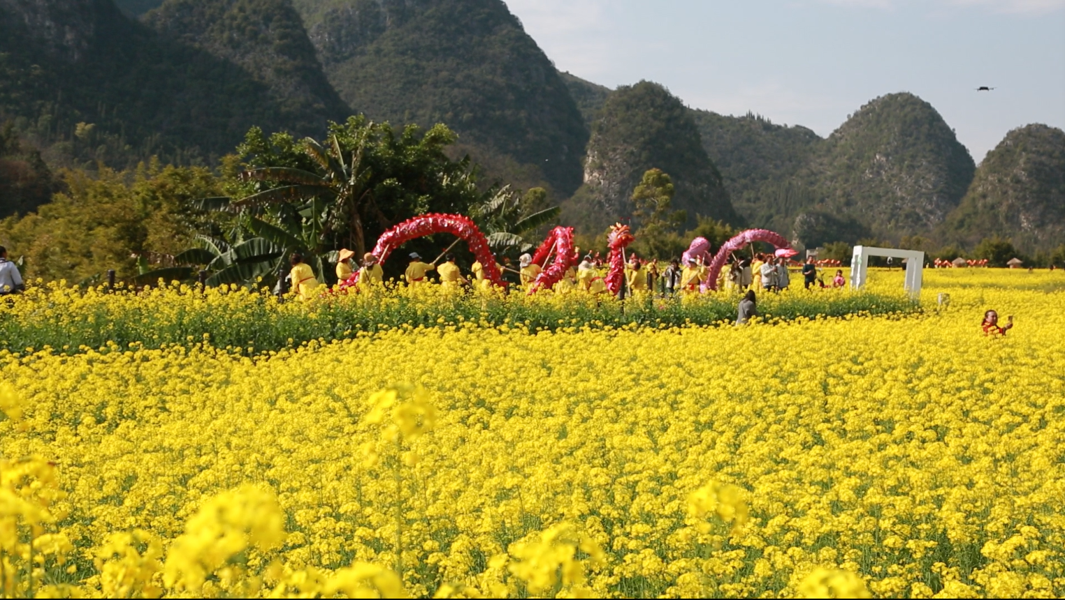 动静图片|贵州兴义万峰林油菜花海里群龙起舞,邀您来纳福!