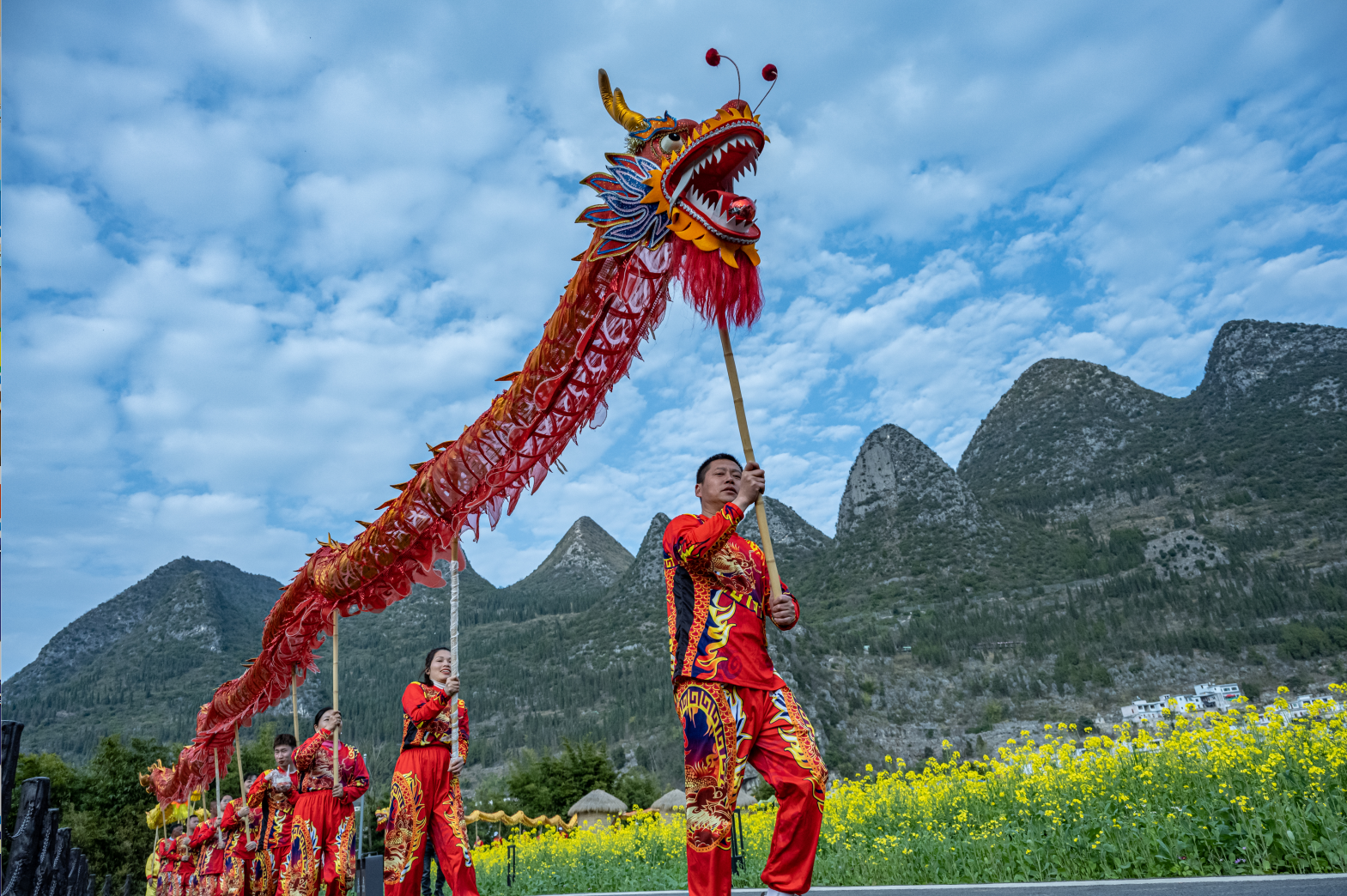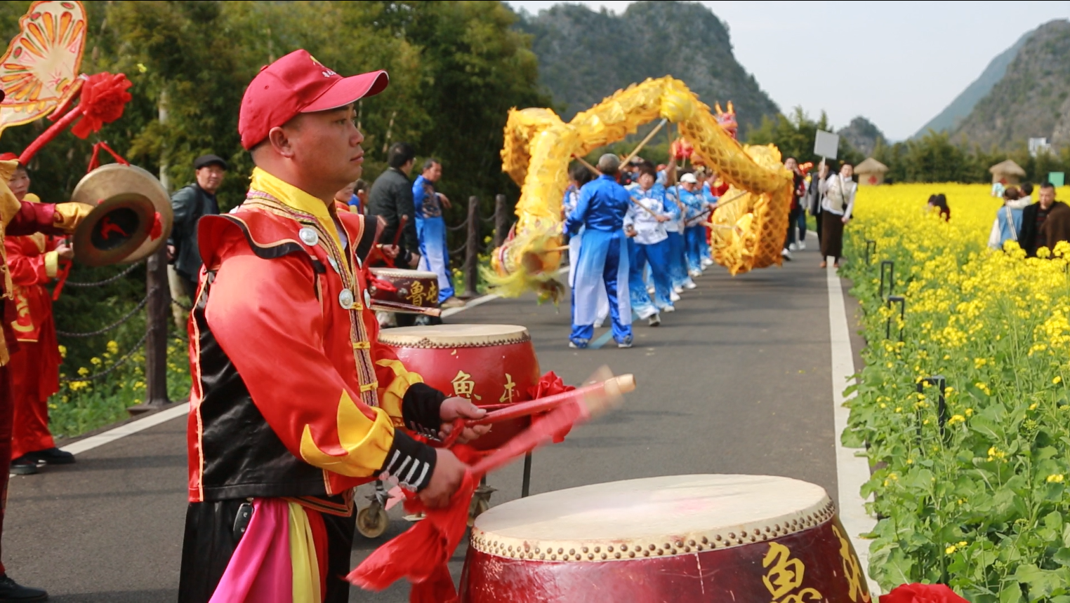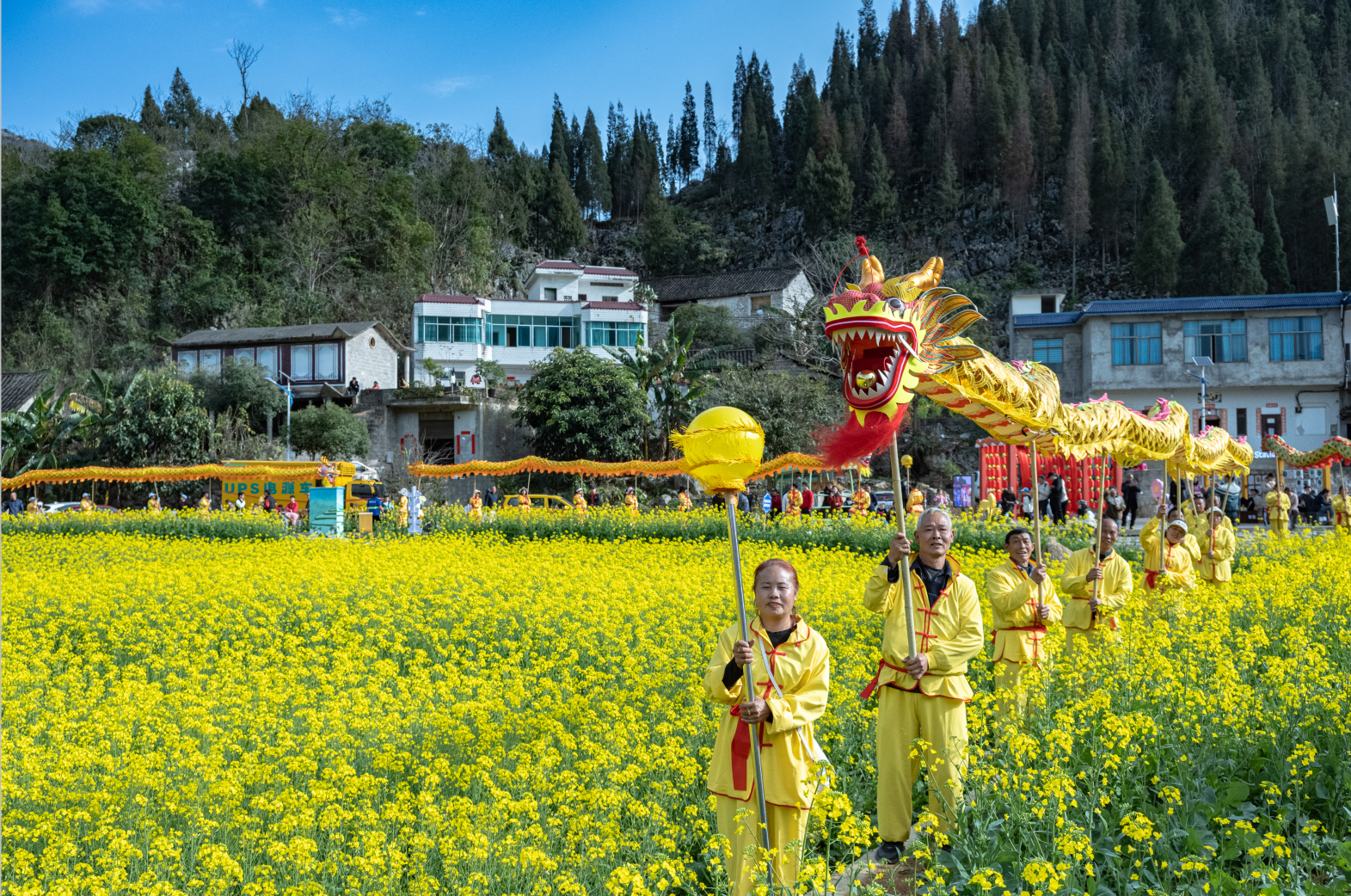 动静图片|贵州兴义万峰林油菜花海里群龙起舞,邀您来纳福!