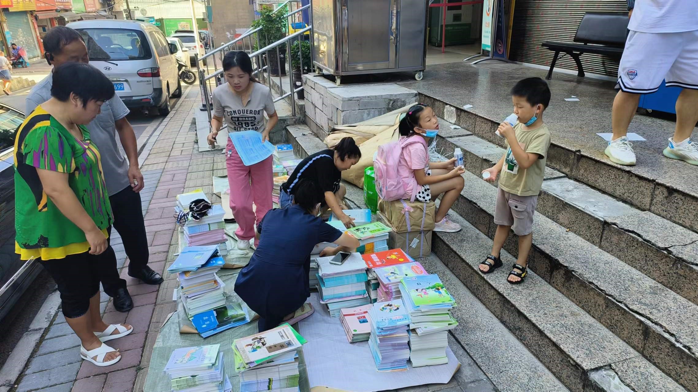 修文县分公司正在为学校发教材
