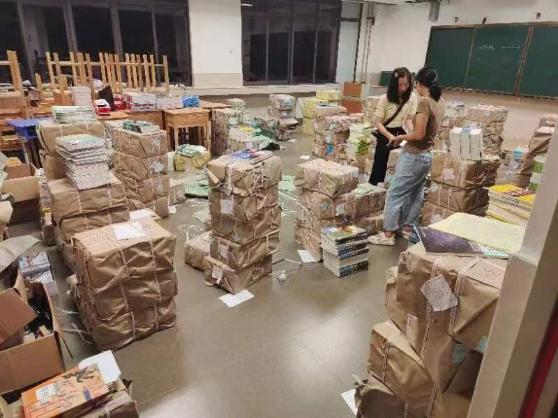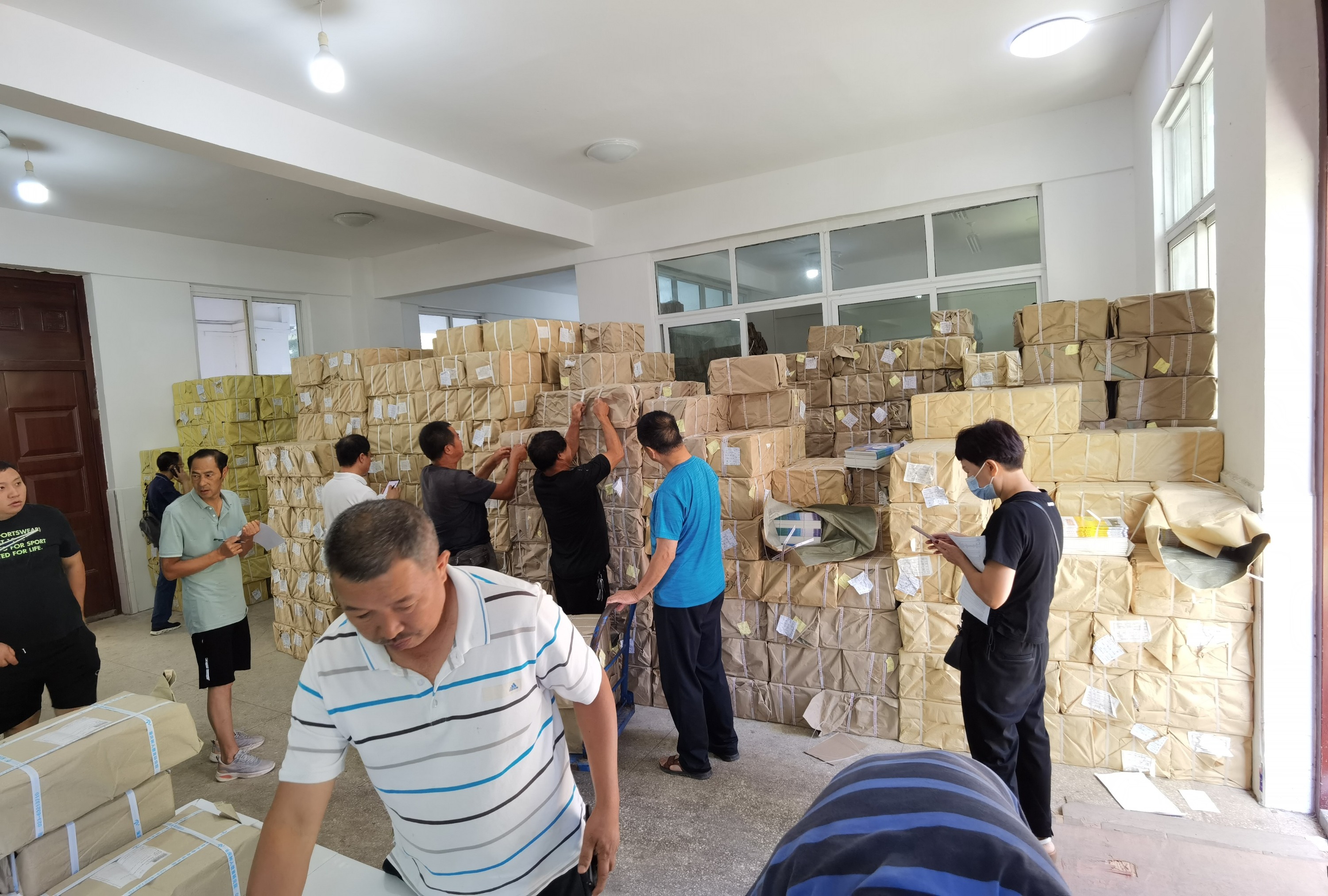 自4月以来,贵阳市全地区做到征订、收货、分配、发货环环相扣,临近开学更是随到随分,配书送书不分昼夜、不分节假,做到件件准确,本本落实。上至领导干部,下至普通员工,都参与到教材发放当中。职工们开启了“白+黑、5+2”的24小时坚守工作模式,全力奋战在教材教辅发运一线,以顽强的毅力和体能极限承受连续高强度的工作,用实际行动诠释了“敢于吃苦、勇于奉献”的新华精神,不忘初心,使命必达。