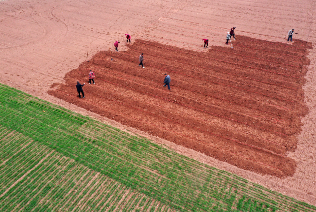 初春时节,河南省沁阳市农民适时进行春耕备耕、农业管理等农事活动,田间一派人勤春早的景象。当地农民抢抓农时,忙碌在田间地头,勾勒出一幅生机盎然的春日农耕图。