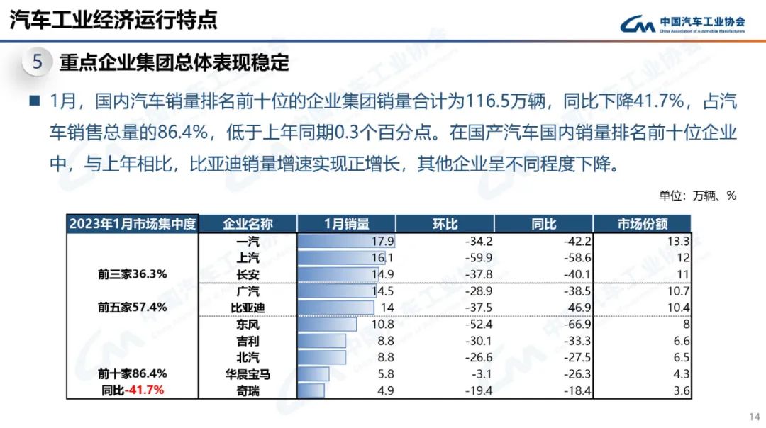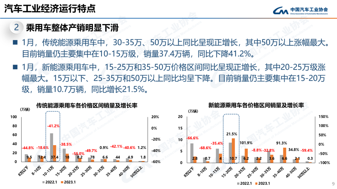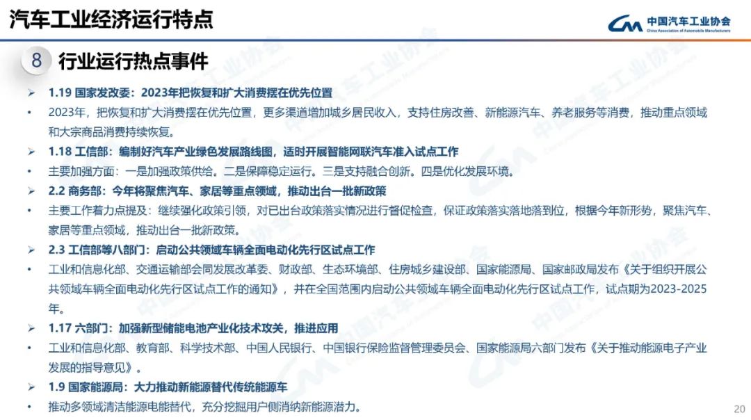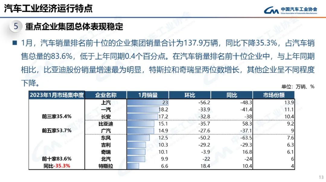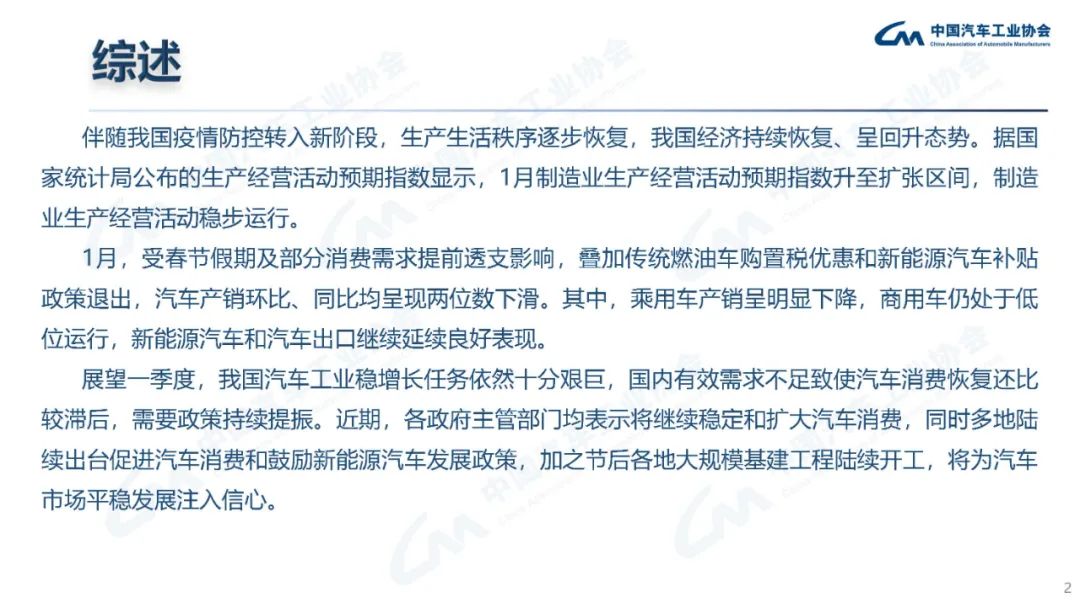 据中国汽车工业协会统计分析,2023年1月,受春节假期及部分消费需求提前透支影响,叠加传统燃油车购置税优惠和新能源汽车补贴政策退出,汽车市场表现平淡,产销环比、同比均呈现两位数下滑。