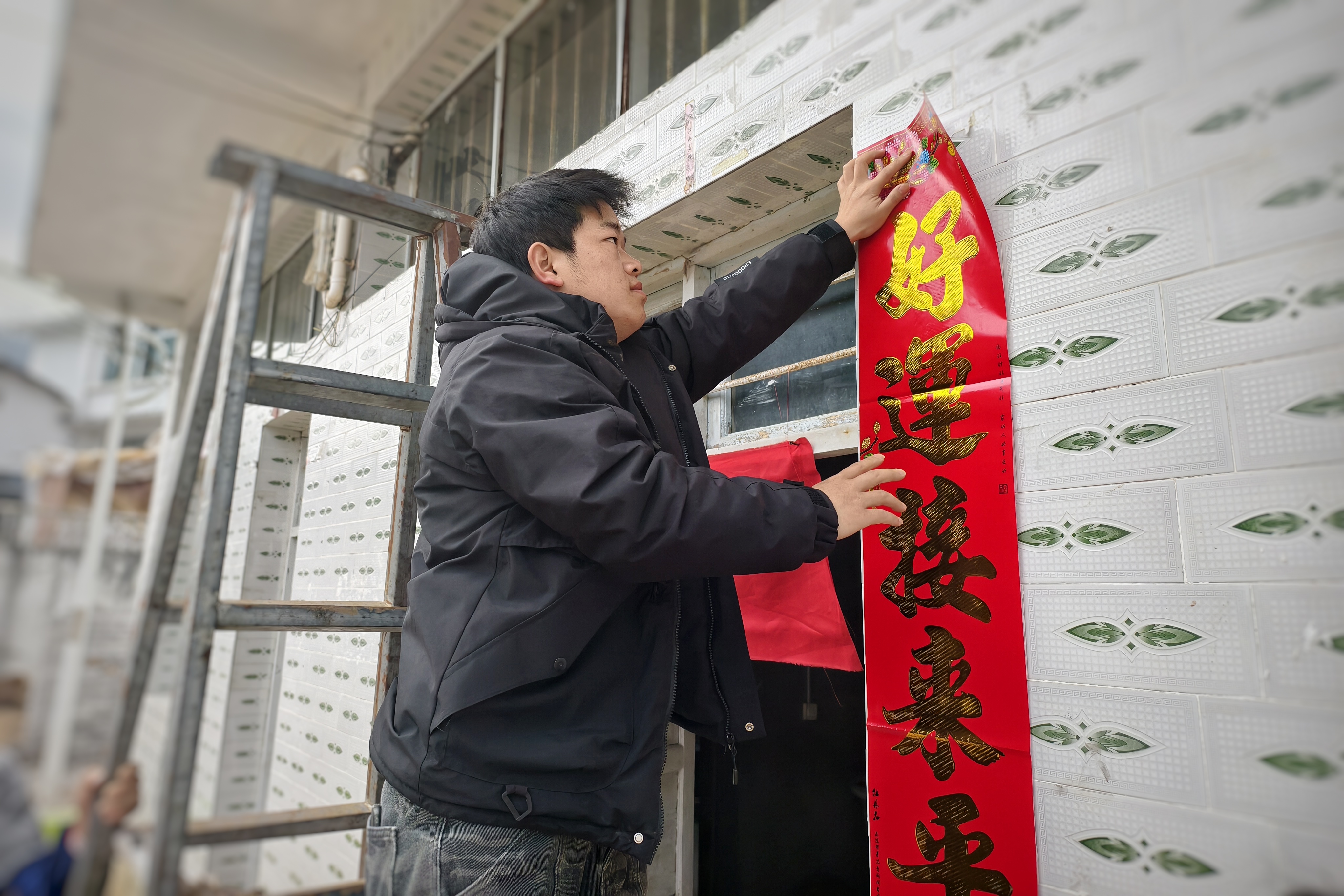 刘元春正在贴春联