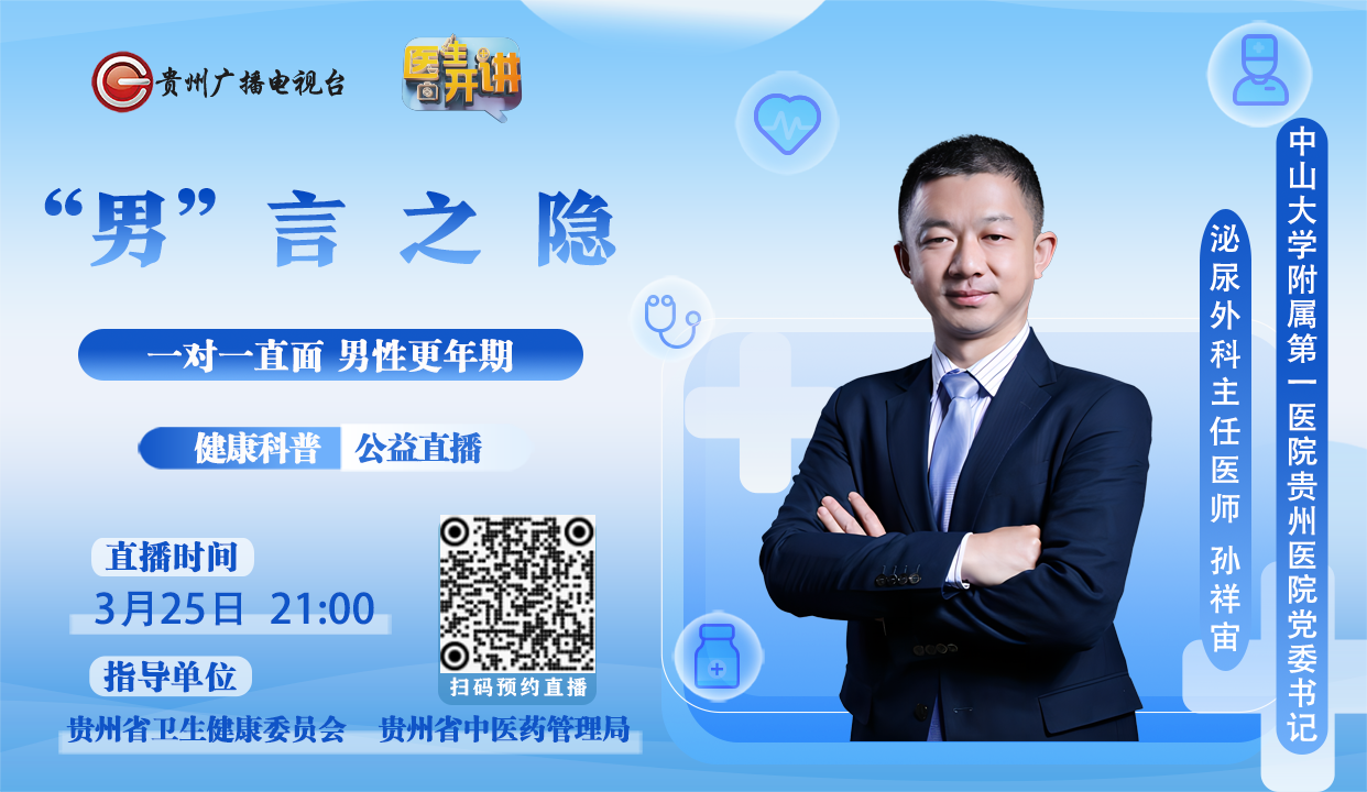 贵州卫视《医生开讲》播出时间为每周一晚21:20,在节目播出的同时我们还会邀请专家医生进入我们的直播间,面对面给大家答疑解惑,赶紧扫描上方卡片二维码预约起来吧,我们不见不散 !