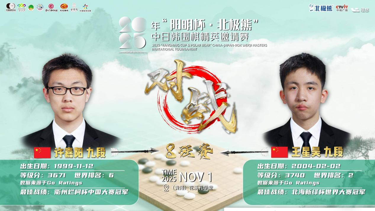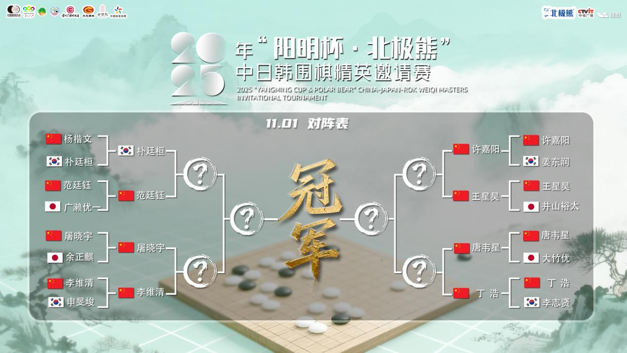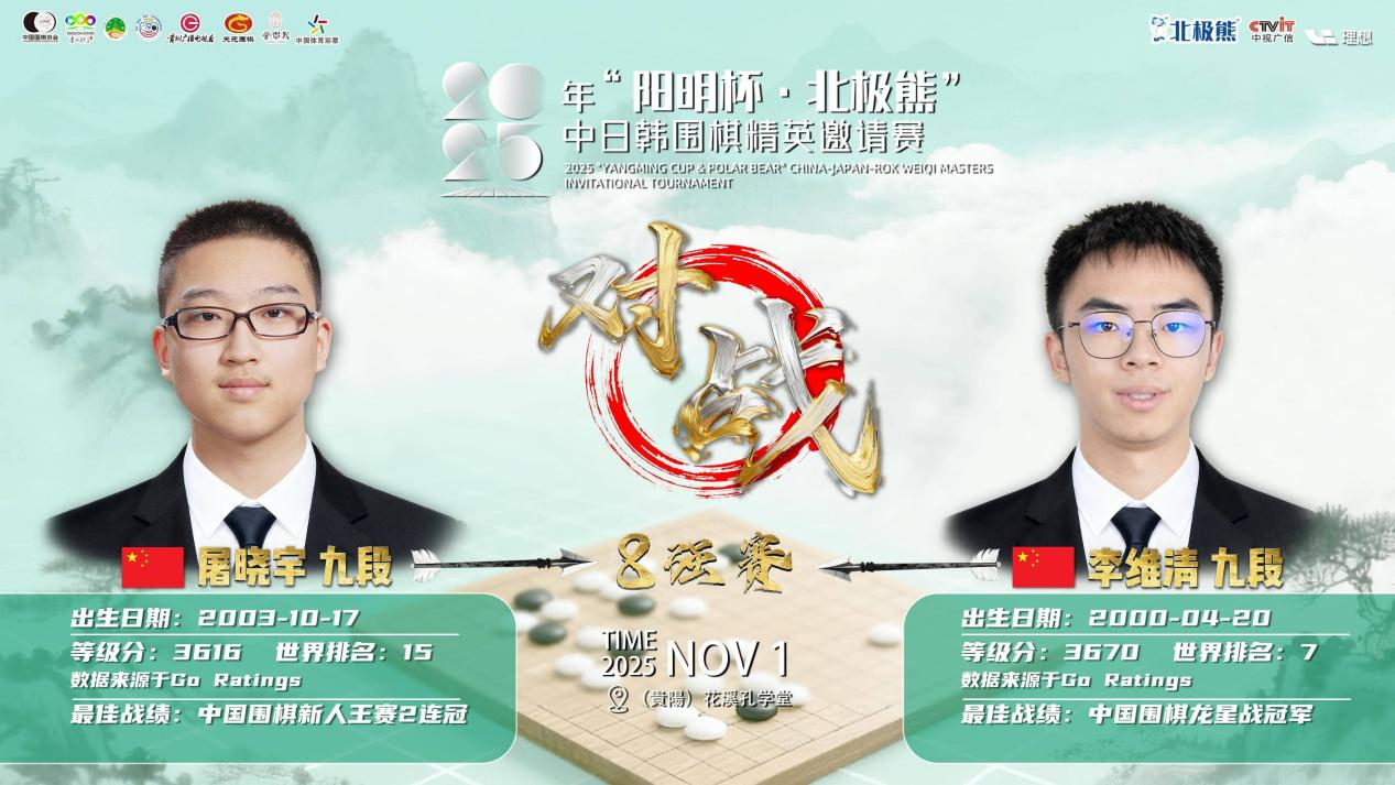今日,2025年“阳明杯·北极熊”中日韩围棋精英邀请赛第一轮(16强赛)在贵阳孔学堂进行。经过长达近6个小时的鏖战,各盘决出胜负,8个晋级名单里中国棋手占7人,剩余一个席位是韩国天王级棋手朴廷桓九段。预知明日对战情况,请看比赛对阵表。
