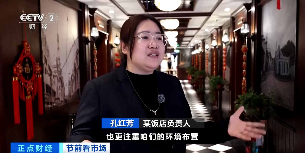 某饭店负责人 孔红芳:跨年夜的包间已经订出去一大半了,消费者不仅追求吃得热闹,也更注重环境布置、服务体验以及节日仪式感。