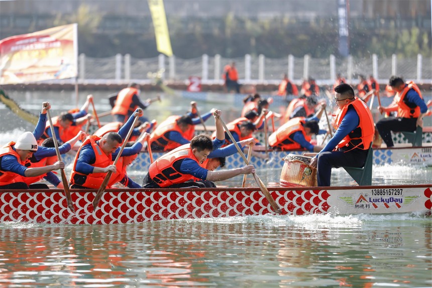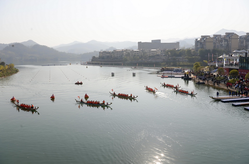 赛龙舟现场。