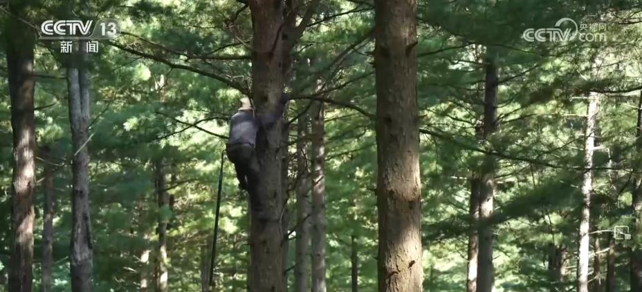 总台记者 杨雪:每年处暑,也就是秋天的第二个节气之后,辽宁本溪桓仁满族自治县二棚甸子镇的松塔陆续成熟。从8月中下旬开始到“十一”前后是松塔的采收季,在这半个多月的时间里,林区会迎来一拨拨采摘松塔的队伍,每支队伍由10—22人组成,大家分工合作,共同完成树尖上的“丰收”。