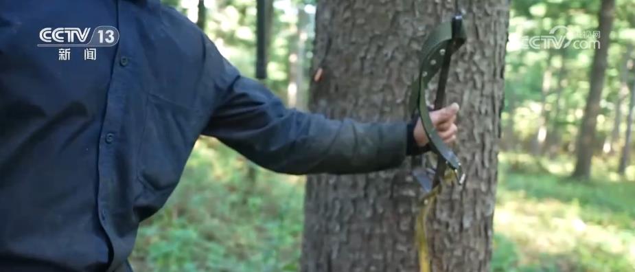 红松树长到15年的时候开始结果,可以持续结果到百年以上。要在高大笔直的树干上自由攀爬,除了需要敏捷的身手和丰富的经验之外,还需要借助一些工具。