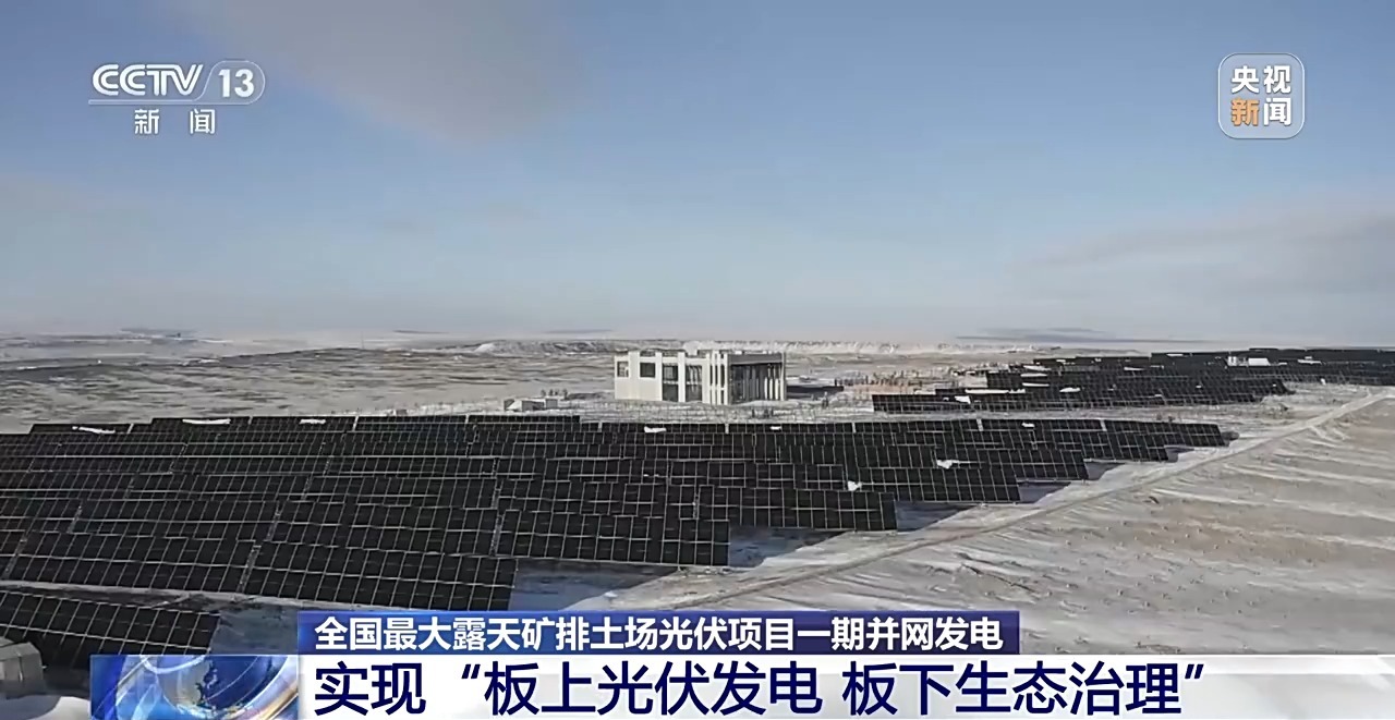 12月25日,全国最大露天矿排土场光伏项目——国家电投可再生能源替代工程300兆瓦光伏项目一期并网发电,项目全容量投产后每年可输送绿电4.5亿千瓦时,相当于节约标煤13.5万吨,减少二氧化碳排放37.2万吨。