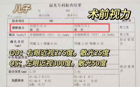 虽然是母子,但每个人的眼部条件存在显著差异。廖进军主任耐心解释道,小王年轻,度数相对较低且稳定,角膜条件优良,非常适合采用创伤更小、恢复更快的全飞秒精准4.0手术;而李女士度数较高,且伴有明显散光,我们为她精心设计了个性化精雕手术方案,这种手术能更精准地矫正复杂屈光问题,提供更优质的视觉体验。