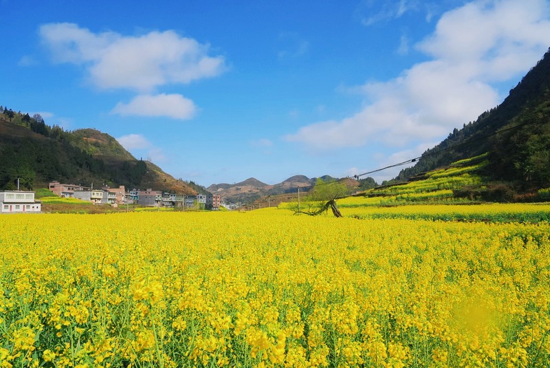 阳春三月,正是油菜花盛开的季节,七星关区燕子口镇5000余亩油菜花竞相绽放,花海与远山相融,勾勒出一幅美丽画卷。油菜花开,满目金黄。从远处望去,只见大片的油菜花犹如金色的海洋,在暖阳下迎着和煦春风泛起金色波浪,浓郁的花香荡漾在空气中,漫步其中,浓烈的春日气息扑面而来。