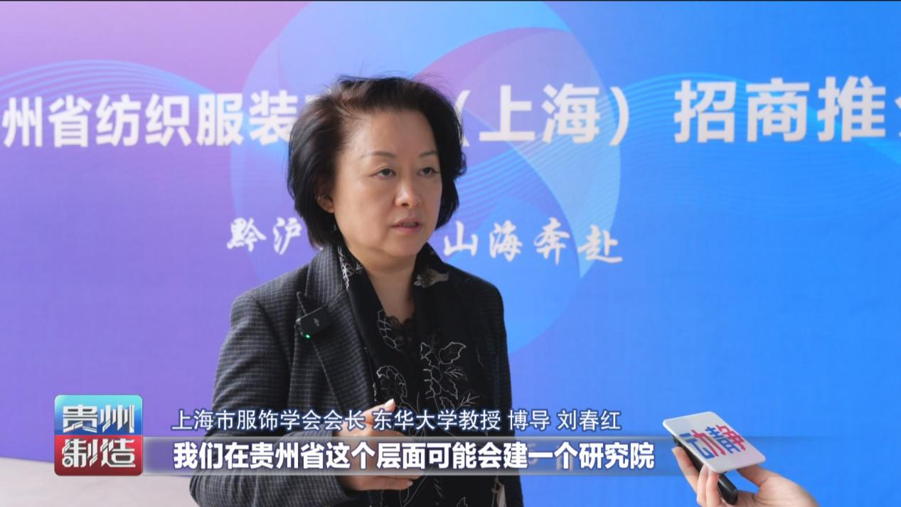上海市服饰学会会长、东华大学教授、博导刘春红,在贵州省层面可能会建一个研究院。希望未来在新材料智能制造,品牌时尚,人工智能这些领域里面去探讨,希望真正能够推动贵州的整个纺织产业的发展。