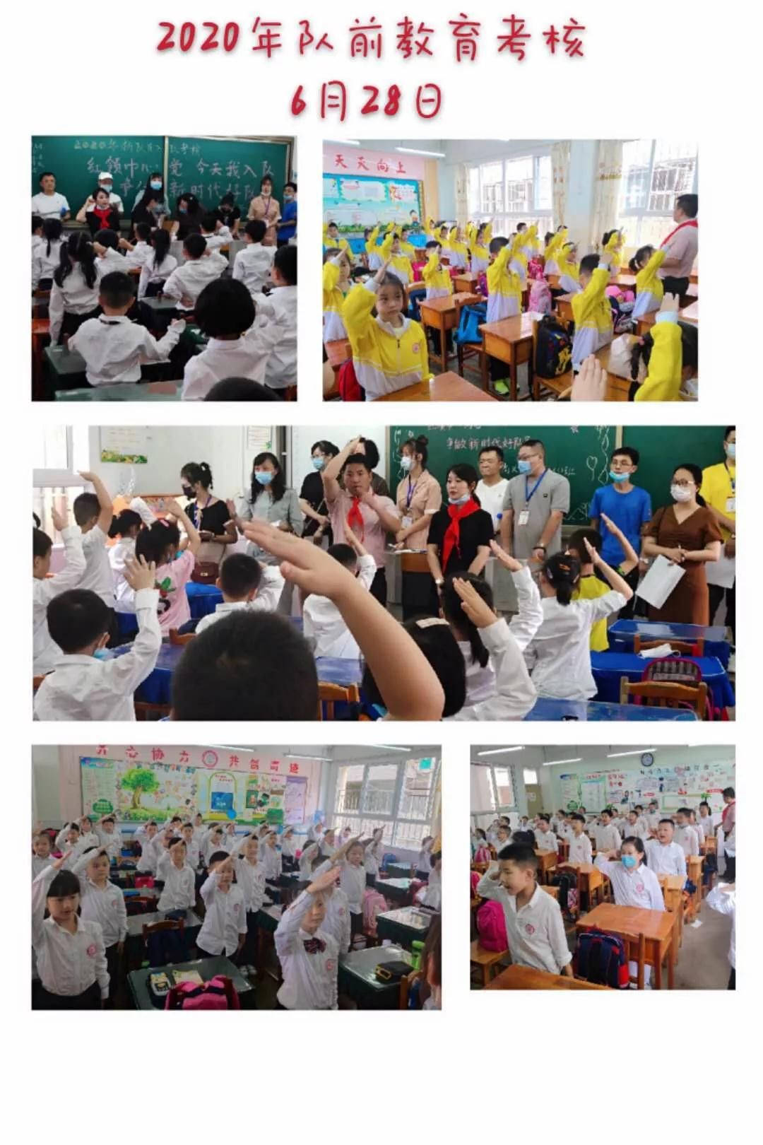 为做好入队前准备工作,按照入队程序,开展了一年级队前教育活动,认真完成学习《中国少年先锋队贵州省队员入队手册》。返校复学后,根据省少工委《关于使用贵州省少先队队前“十知、六会、一做”系列教育“十知”主题微辅导活动视频的通知》,还组织一年级小伙伴利用班会课与课余时间观看“贵州省少先队队前教育′十知‛主题微辅导视频”,完成“队前教育奖章”认定考核。6月28日,学校少先队大队组织开展了“队前考核”活动。