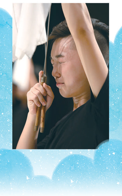 “静举”是木偶表演最基础的动作,要求将木偶举得高、举得稳。每天早上练功,演员们都要先举上半小时。除了“静举”,还要练习“木偶操”。“每天都要练,演员练不到位,木偶的动作表情自然也不到位,观众可不好糊弄。”胡海说。