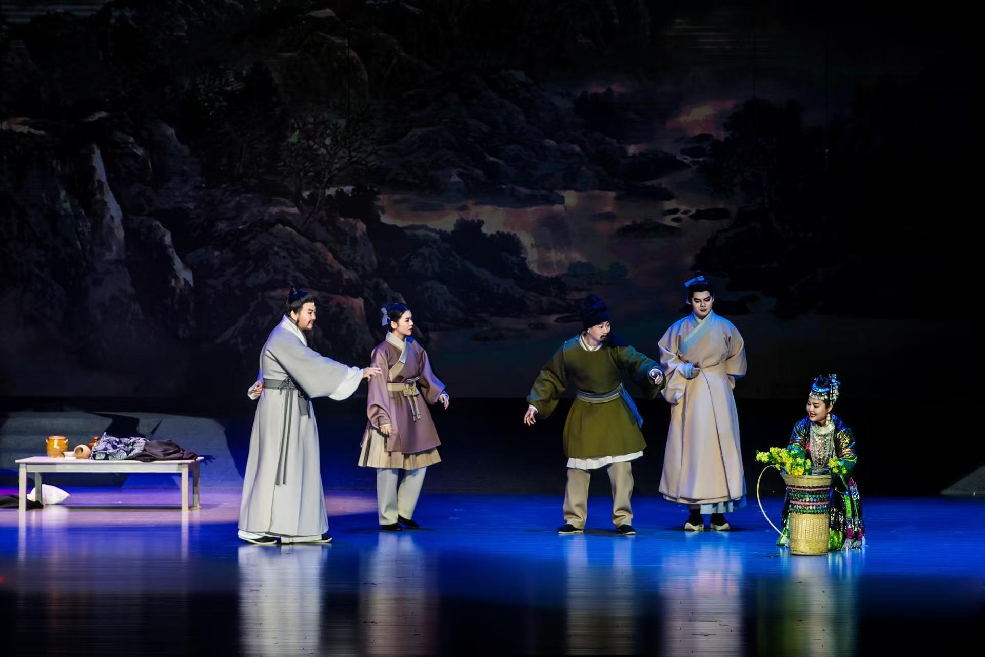 贵州省文艺精品创作扶持重点项目,教育部、文化和旅游部、 财政部、高雅艺术进校园项目歌剧《王阳明》(作曲:柳进军;编剧:王华 柳进军;剧诗:王阳明 谯达摩 柳进军)由贵州大学、中央歌剧院、贵州道禧文化传媒有限公司出品,演出单位:贵州大学代表团。