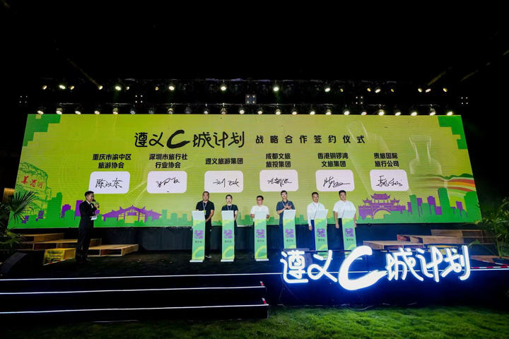 20日晚,部分代表还参加了由遵义市文化旅游局指导,遵义旅游集团主办的“赤水河谷九月九·第二届遵义酱酒节”系列活动之一“遵义C城计划产品发布会”。香港铜锣湾文旅商产业发展集团总裁陈冠廷先生受邀参加了酒旅融合发展对话主题活动,并与遵义旅游集团签署了战略合作协议。
