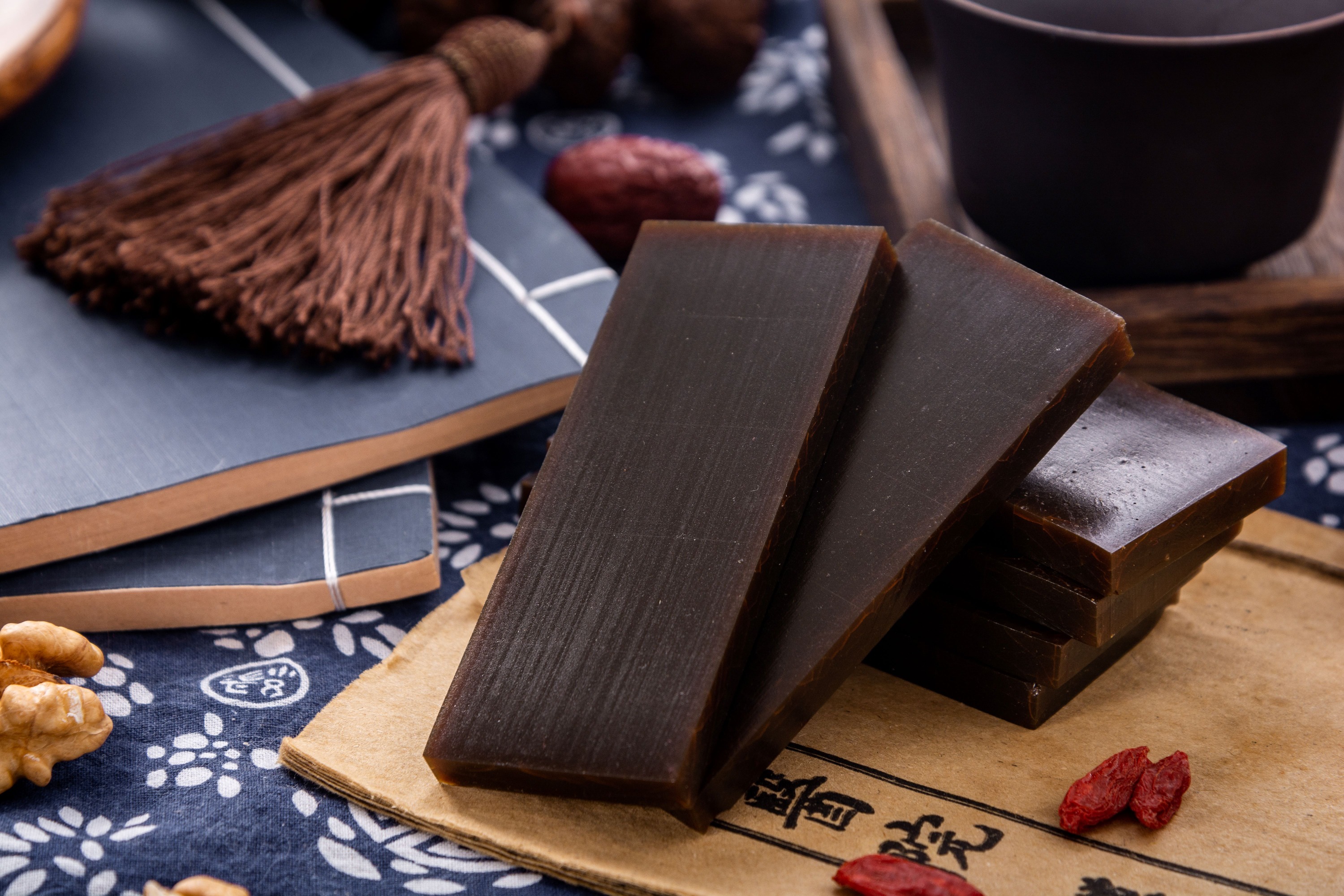 我们熟知的阿胶是用驴皮熬制出的胶做成,但在汉代时,古人们曾用鹿角、猪皮、牛皮熬制,随着历史的演变,阿胶逐渐统一以驴皮为原料熬制而成。