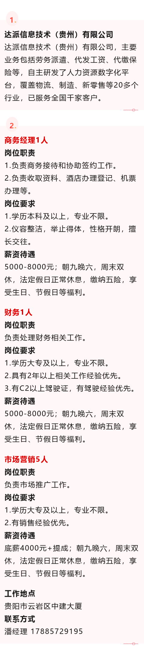 【贵阳市云岩区】达派信息技术(贵州)有限公司招聘!月薪可达8000元!