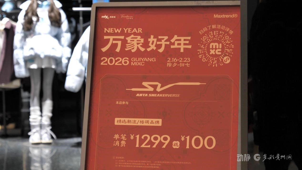 与此同时,商圈消费同样“热”潮涌动。贵阳市内多家商场举办年货节,涵盖服饰、家电、美妆等多个品类,满减、折上折、消费返赠等促销活动轮番上阵,进一步释放节日消费潜能。
