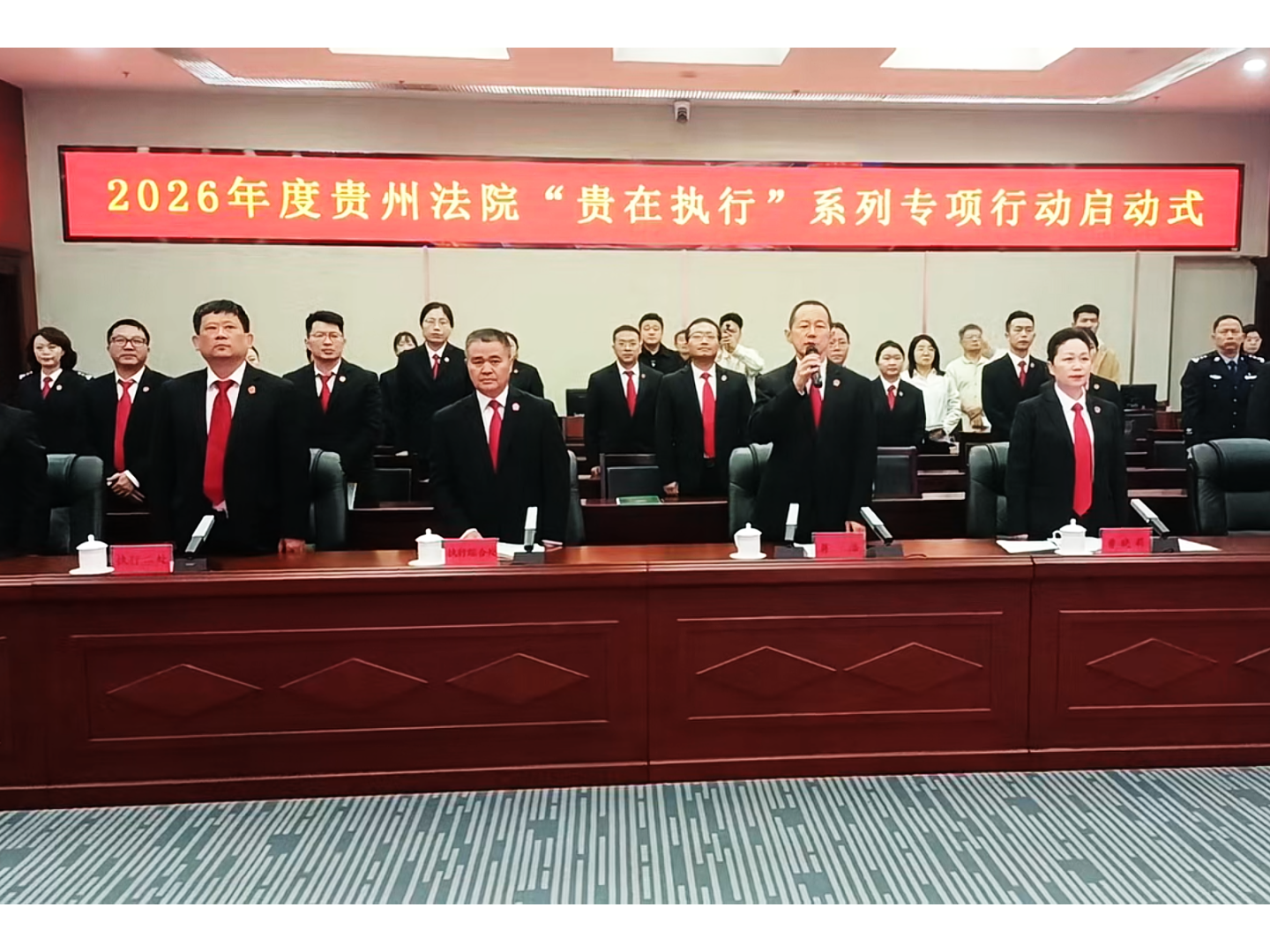 为深入贯彻落实最高人民法院关于有效解决执行难的工作部署,切实兑现胜诉当事人的合法权益,4月28日上午,贵州全省法院开展“贵在执行”系列专项执行行动,行动将持续至 2026 年 12 月 31 日。
