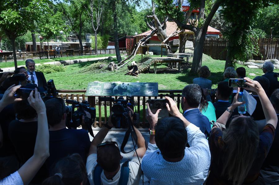 马德里动物园中,游客在给熊猫拍照 图片来源:央视新闻
