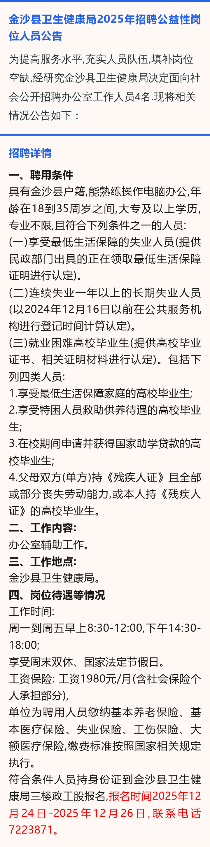 【事业单位】卫生健康局招聘!报名时间:2025年12月24日-12月26日!