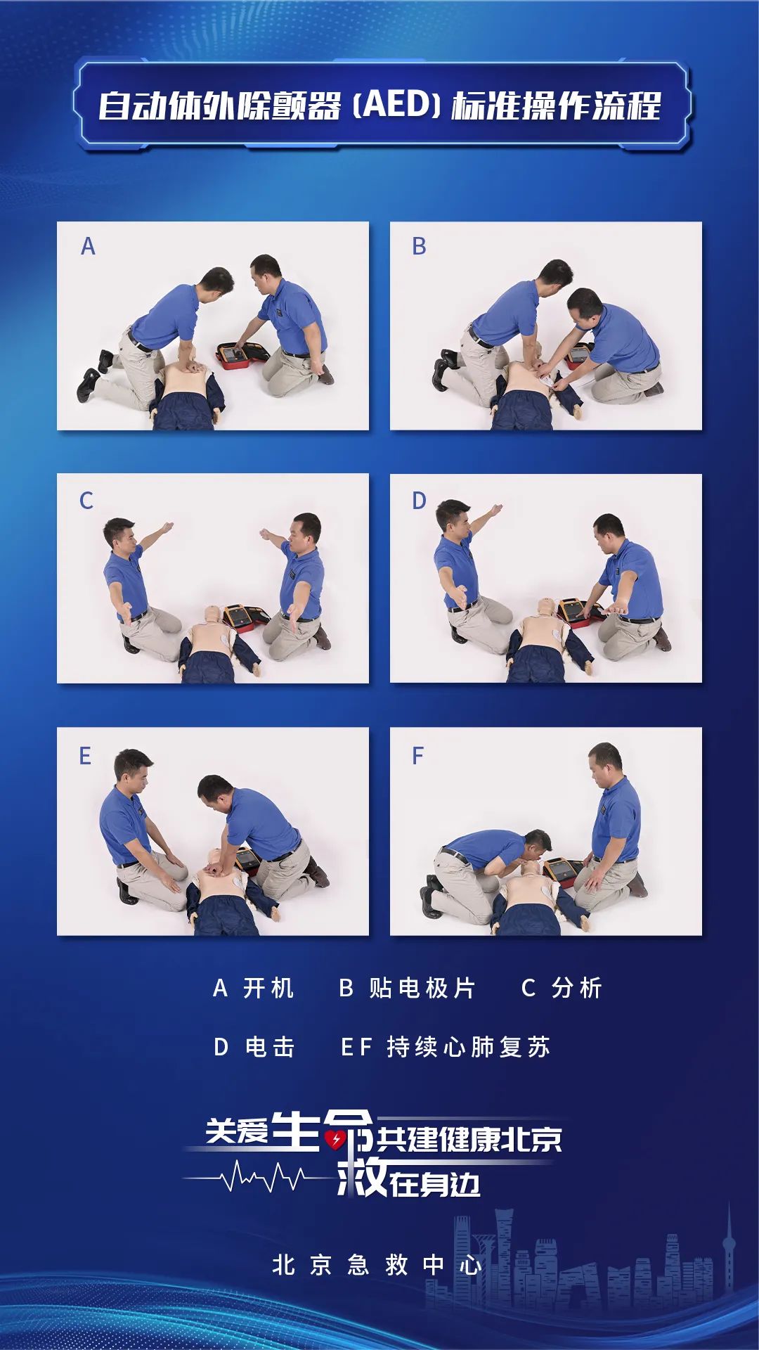 2021年,本市15个部门、单位联合印发了《北京市重点公共场所社会急救能力建设三年行动方案(2021年-2023年)》。经过三年的协同持续推进,今年作为行动方案的收官之年,全市已完成重点公共场所配置5000台AED的目标任务,编制了AED电子地图,实现了AED信息与120指挥调度系统联通。已配置的AED和培训的人员多次成功抢救公共场所突发心脏骤停患者,发挥了关键时刻能救命的作用。