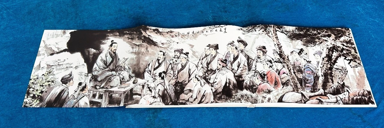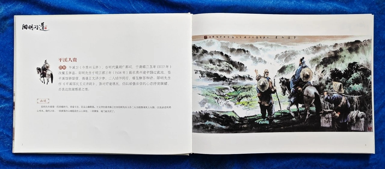 从“初入黔地”的山水跋涉,到“龙场悟道”的顿悟瞬间;从“平越思隐”的哲思沉淀,到“龙冈开讲”的传道热忱——画册以细腻笔触还原阳明先生入黔行迹,辅以题解导读与画境解析,让心学智慧跃然纸上。