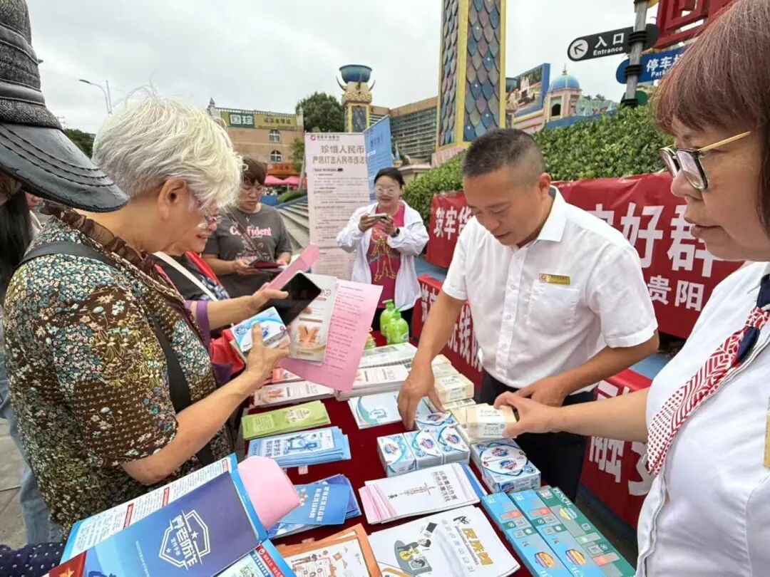 9月是反假货币宣传月。根据中国人民银行贵州省分行2025年反假货币宣传月相关工作要求,贵阳农商银行围绕“筑牢货币安全网 守好群众钱袋子”主题,全面开展反假货币集中宣传工作月活动。9月1日-7日为宣传第一阶段,聚焦“反假宣传进景区” 核心任务,各支行结合辖区特色与资源优势,创新宣传形式、丰富互动内容,将专业反假货币知识转化为群众“听得懂、用得上”的实用技能,在景区、公园等人流密集区域掀起反假货币宣传热潮,切实筑牢基层金融安全防线。