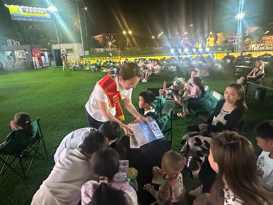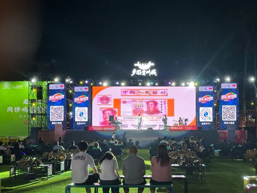 中兴路支行、云关支行携手多彩贵州城景区管理方,将景区特色星光秀音乐演出与反假货币知识科普深度融合,打造了一场突破传统、趣味十足的沉浸式反假货币宣传活动。景区精心编排的音乐表演与支行制作的反假宣传视频交替上演 ,实现“娱乐+学习”的双重收获,让反假货币知识“听得懂、记得住、用得上”。