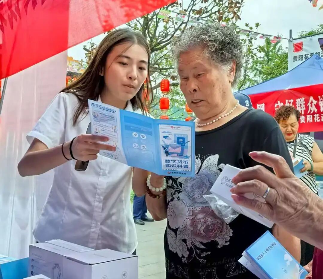 花溪支行营业部和龙王支行联合辖区多家金融机构组成金融宣传队,走进花溪公园开展反假货币宣传活动。绿荫下的金融课堂,开启从现金到数字货币知识的双重传递和守护,为游园群众筑起一道坚实的金融安全防线。