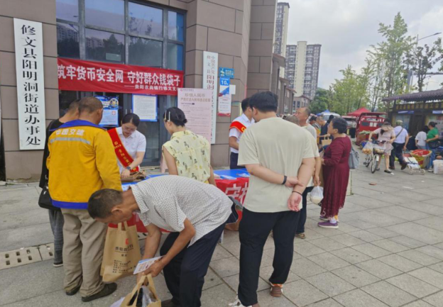 修文支行营业部联合修文县阳明洞街道办事处,在幸福村集市举办以“筑牢货币安全网 守好群众钱袋子”为主题的人民币防伪反假金融知识普及活动,将人民币防伪反假知识送到村民身边,同时针对集市内的商贩进行了走访和金融知识宣传。