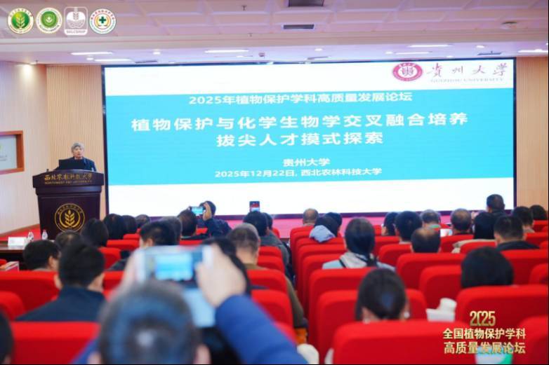 12月22日上午,2025年全国植物保护学科高质量发展论坛大会在西北农林科技大学举行,贵州大学校长宋宝安院士应邀出席,并以“植物保护与化学生物学交叉融合培养拔尖人才模式探索”为题作主旨报告。
