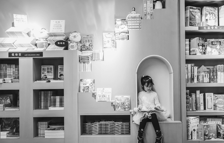 ▲一名小读者在山东威海一家城市书房低幼区阅读绘本 李信君 摄