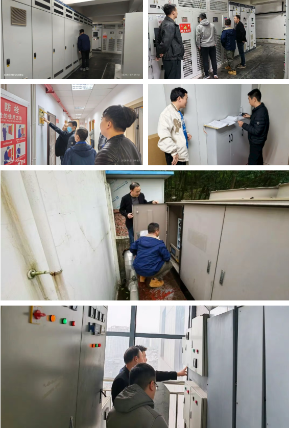 演练次日,贵州医科大学附属肿瘤医院副院长陈亚东带领保卫科、总务科、网络中心,对配电室、网络机房、空调机房等重要设备机房开展专项检查。检查组以“严、细、实”为标准,重点核查日常巡检记录完整性、电气设备运行稳定性、消防设施有效性及通道畅通情况。检查中恰逢配电房人员日常巡查,其细致认真的工作态度获检查组肯定,被赞为“隐患防范第一道防线”。本次检查未发现重大隐患,仅两处细节需整改,相关科室即时响应,迅速落实整改措施,实现隐患清零。