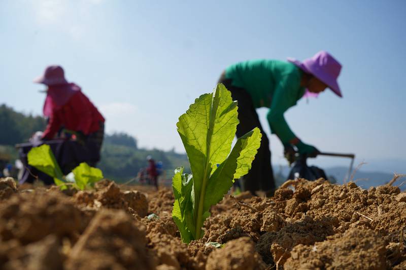 烤烟作为民族村主导产业之一,每年收成后空闲了大量土地,通过“N+蔬菜”的轮作模式,把蔬菜种植作为秋冬种主导产业来抓,让“冬闲田”变为“增收田”,助力群众增收。