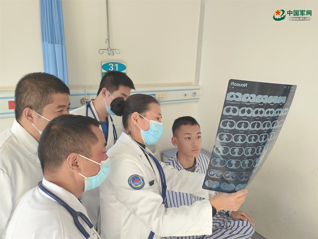 "有你们在,真好!"宋浩在信中表达着对张瑛及医疗队队员们的感谢。这样的话,张瑛每次听到都会倍感军医职责使命的重量。张瑛带领科室人员查房,图为张瑛为住院战士讲解病情。谢娜 摄