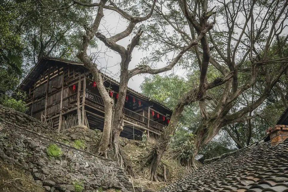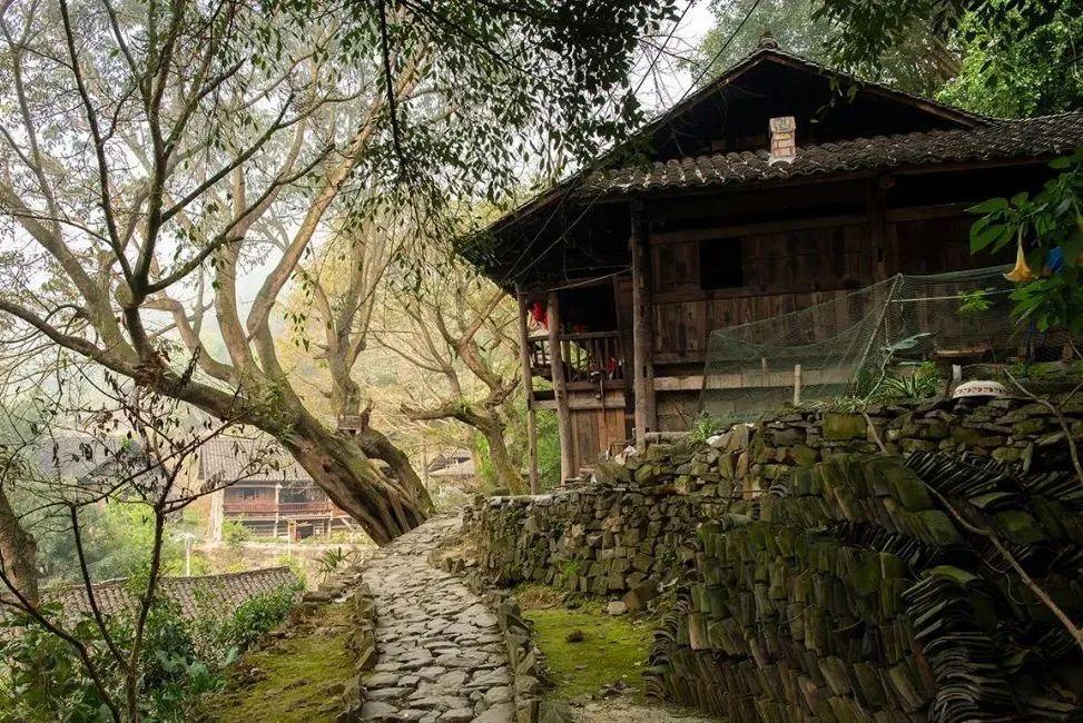 寨中巷道环环相扣、道道相通,按九宫八卦形排列。寨内古树参天,石板路上青苔遍生,甚是湿滑,往前望去,幽静曲折,韵味十足。