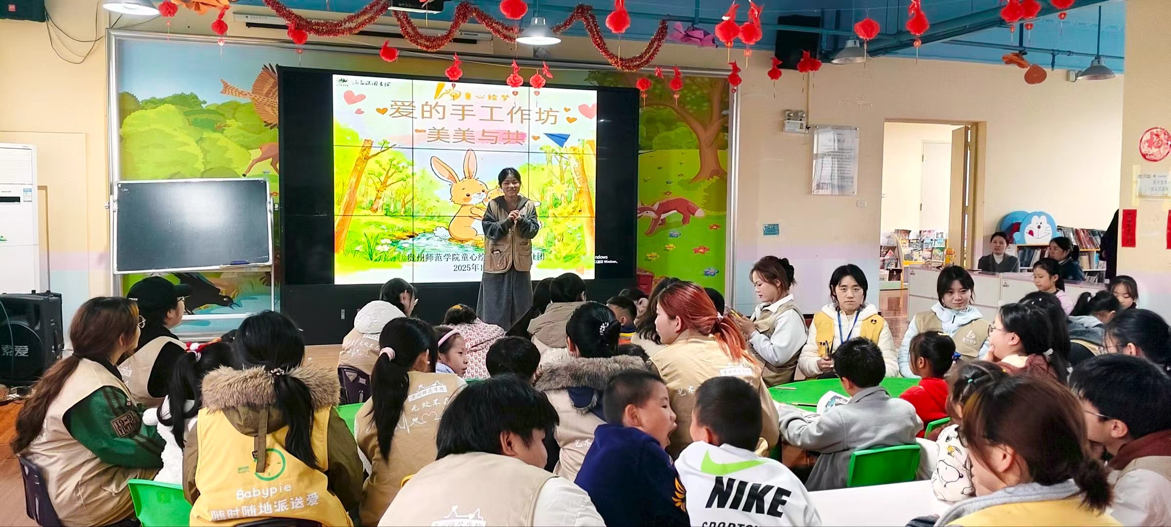 该社团依托贵州师范学院学前教育、特殊教育、艺术教育等学科优势,构建专业服务体系,聚焦儿童阅读力、想象力、创造力培养,将单一绘本阅读延伸为情景剧表演、创意手工等多元活动,形成 “阅读输入 + 创作输出”的成长闭环。此前在 2024—2025秋季学期,社团已开展 9 期“图书馆伴读计划”,覆盖颜色认知、安全教育等多维度内容,累计服务儿童及家长超 200 人次,活动广受欢迎。