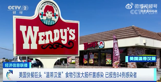 ▲美国疾控中心25日表示,与美国快餐巨头温蒂汉堡有关的大肠杆菌感染,本周继续在美国中西部扩大。自本月17日首次公布以来,已累计报告相关感染人数达84人,暂无人员死亡的报告。