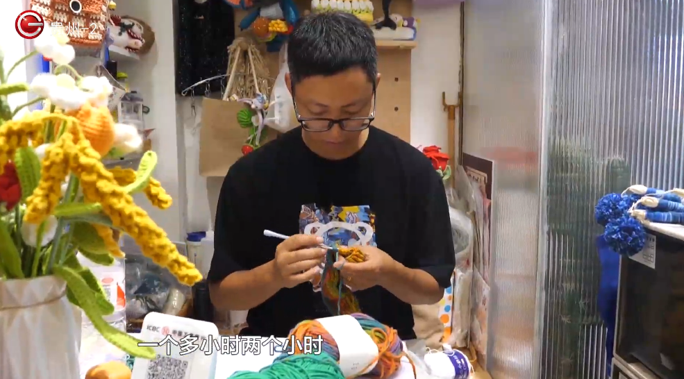 一根针、一卷线,随着钩针在手中轻巧地翻飞,就能造出栩栩如生的花朵。这就是隐于青云市集的“高手”—— 赵云鹏,他精通毛线钩织,“钩个球”是他充满魔法的小店,在热闹的街头治愈着路人。