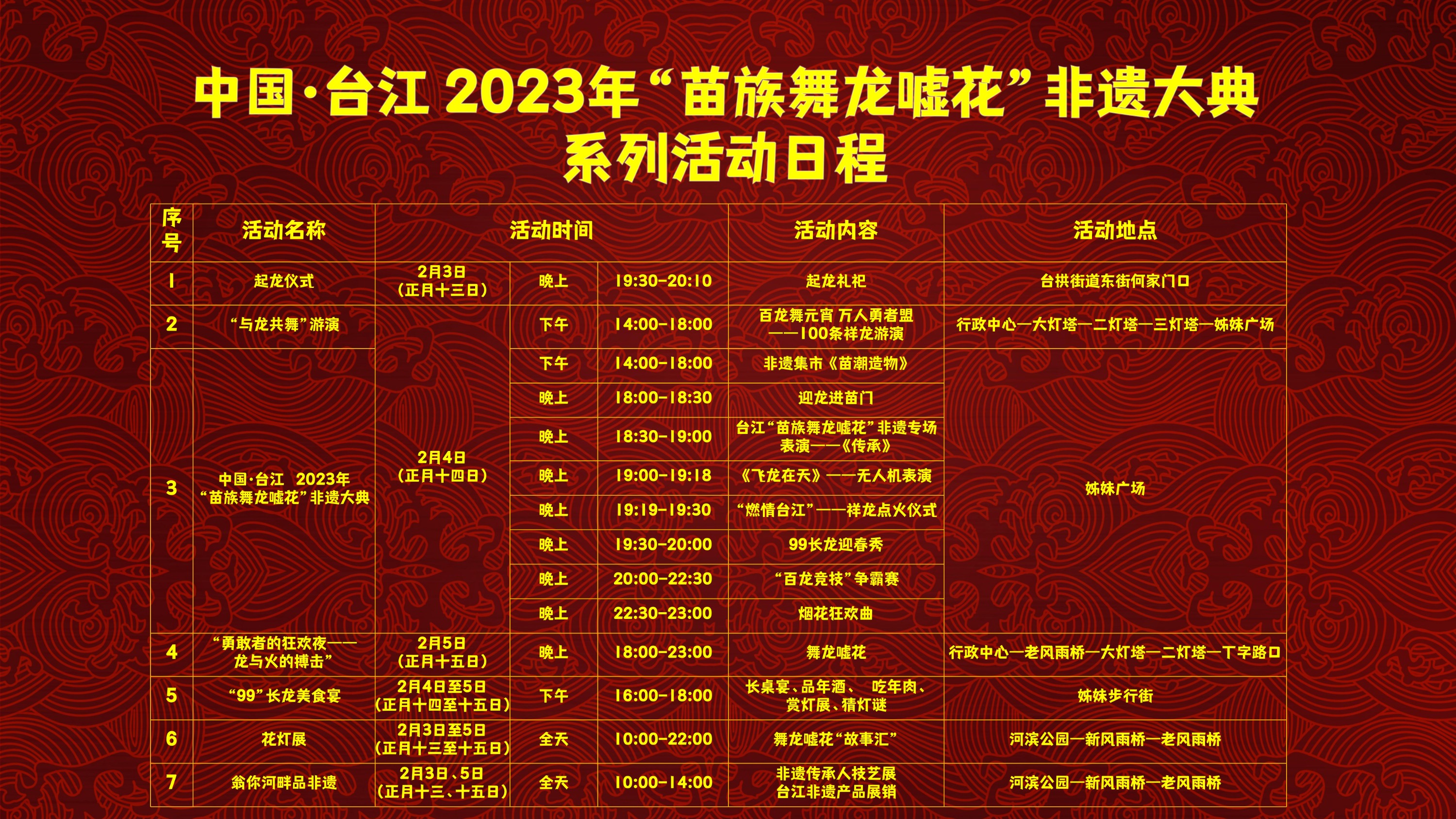 2023年2月3日至5日,中国·台江“苗族舞龙嘘花”非遗大典,邀您体验不同的年味,用力去感受人间的美好时刻,在烟花绚烂,追逐打闹的笑声连连中,迎接温暖美好的新年。